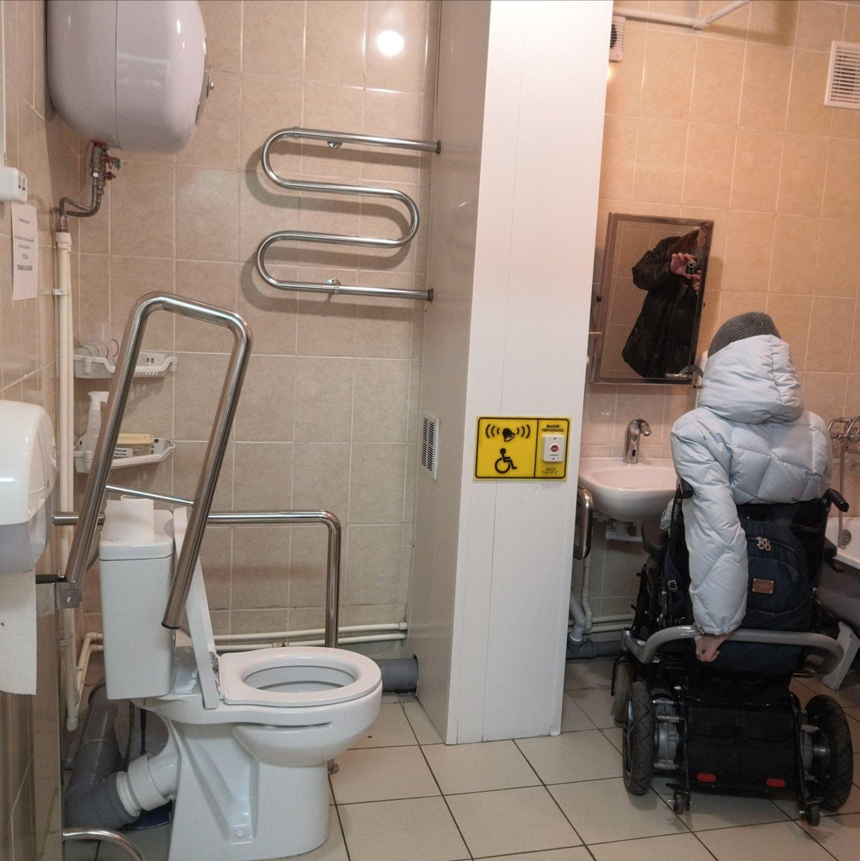 В настоящее время в приемном покое и административном корпусе больницы функционируют санузлы для маломобильных граждан. Они оборудованы специальной удобной сантехникой, поручнями, держателями, тактильными указателями, сенсорными умывальниками. Внутреннее пространство санузла позволяет человеку на инвалидной коляске маневрировать и удобно подъезжать к унитазу, умывальнику и сушилке.