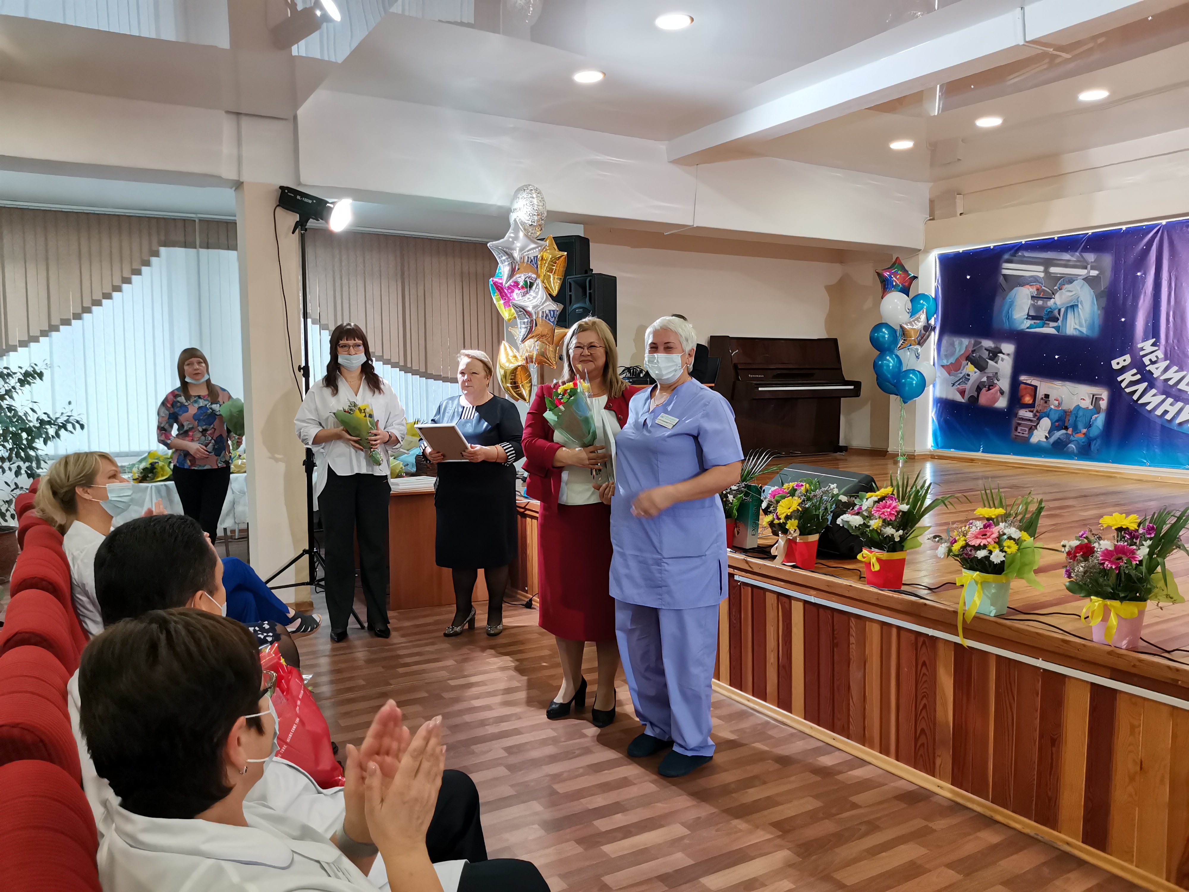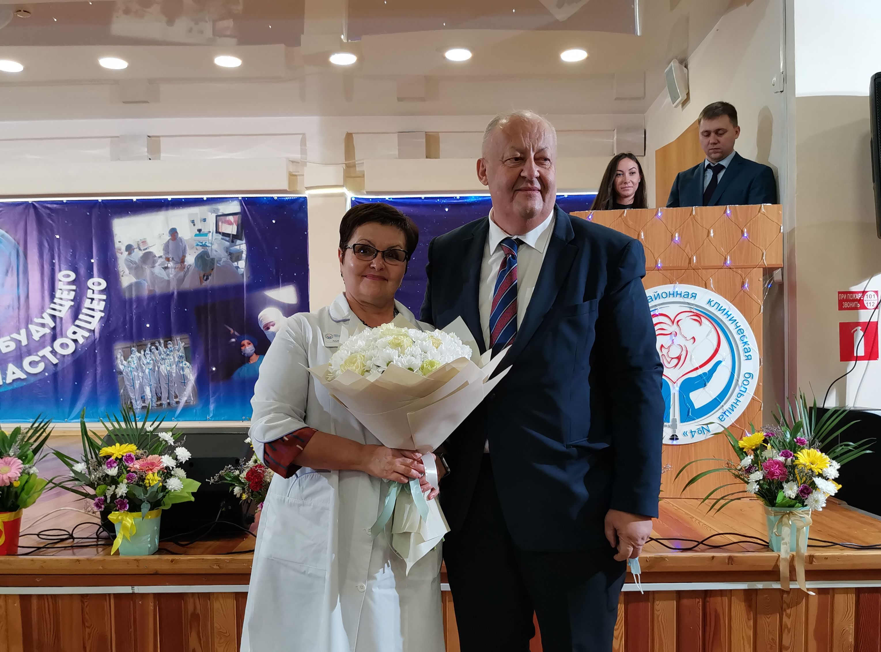 Среди гостей были депутат Красноярского городского Совета, главный врач КГАУЗ «Красноярская городская стоматологическая поликлиника № 1» Дмитрий Власов, заместитель руководителя Администрации Кировского района г. Красноярска Елена Теплякова, главный врач КГБУЗ «Красноярская межрайонная клиническая больница №20 им. И.С. Берзона» Владимир Фокин. Они вручили сотрудникам больницы почетные грамоты и благодарственные письма, поблагодарили за труд и пожелали успехов в дальнейшей работе.