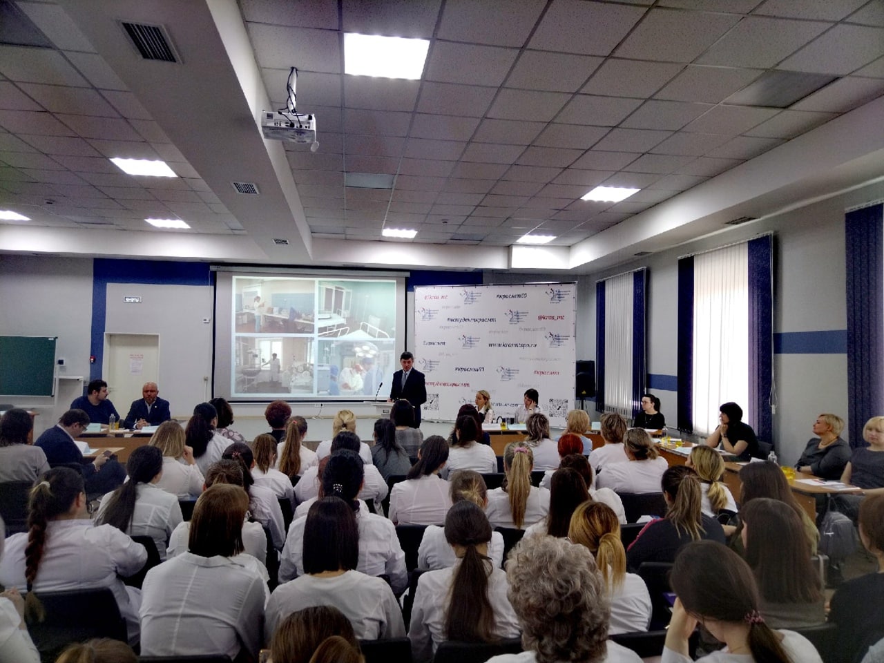 Каждому медицинскому учреждению была представлена отдельная площадка, на которой были предложены вакансии, раздаточный материал и подготовленные договора для прохождения преддипломной практики.