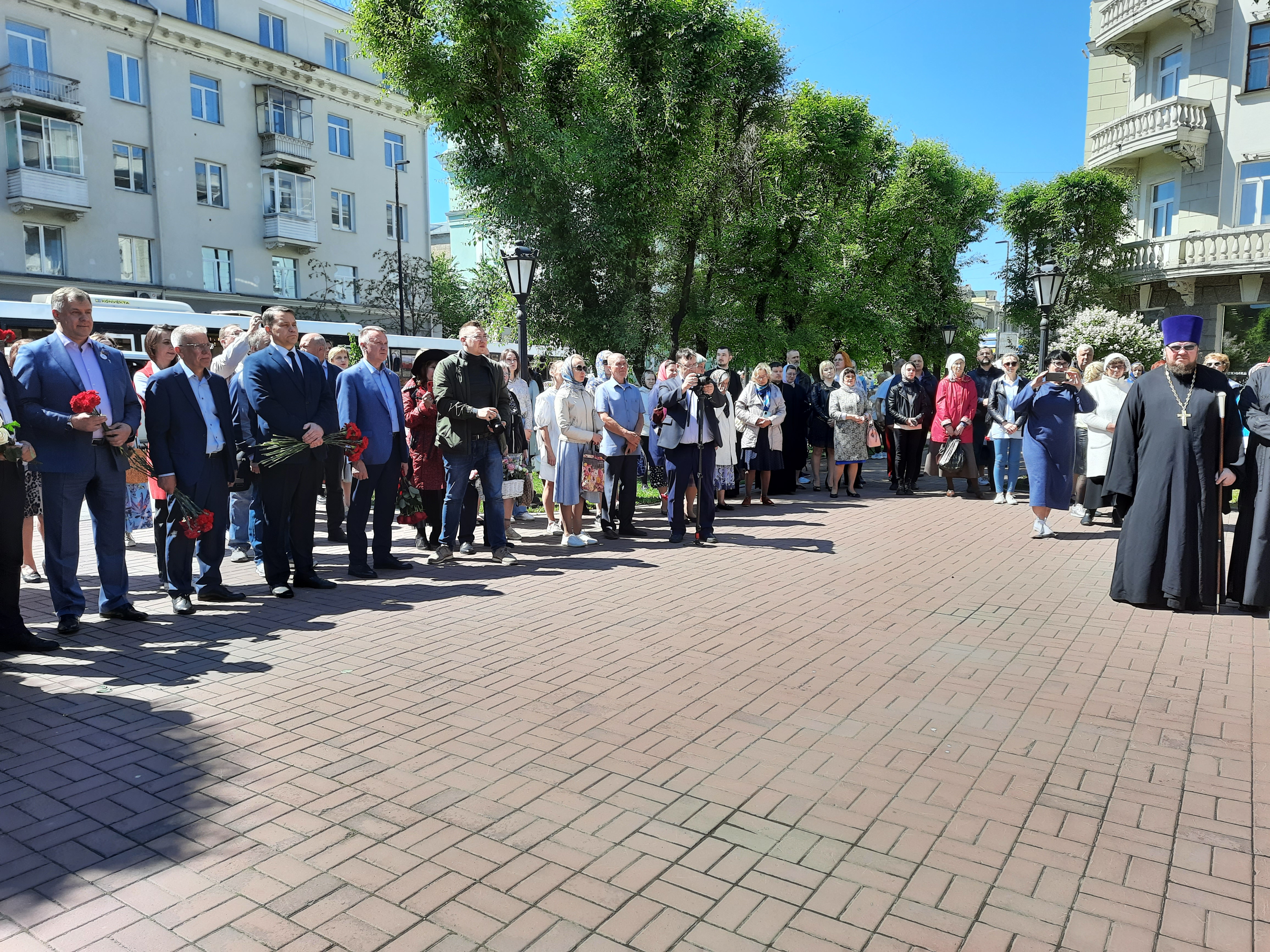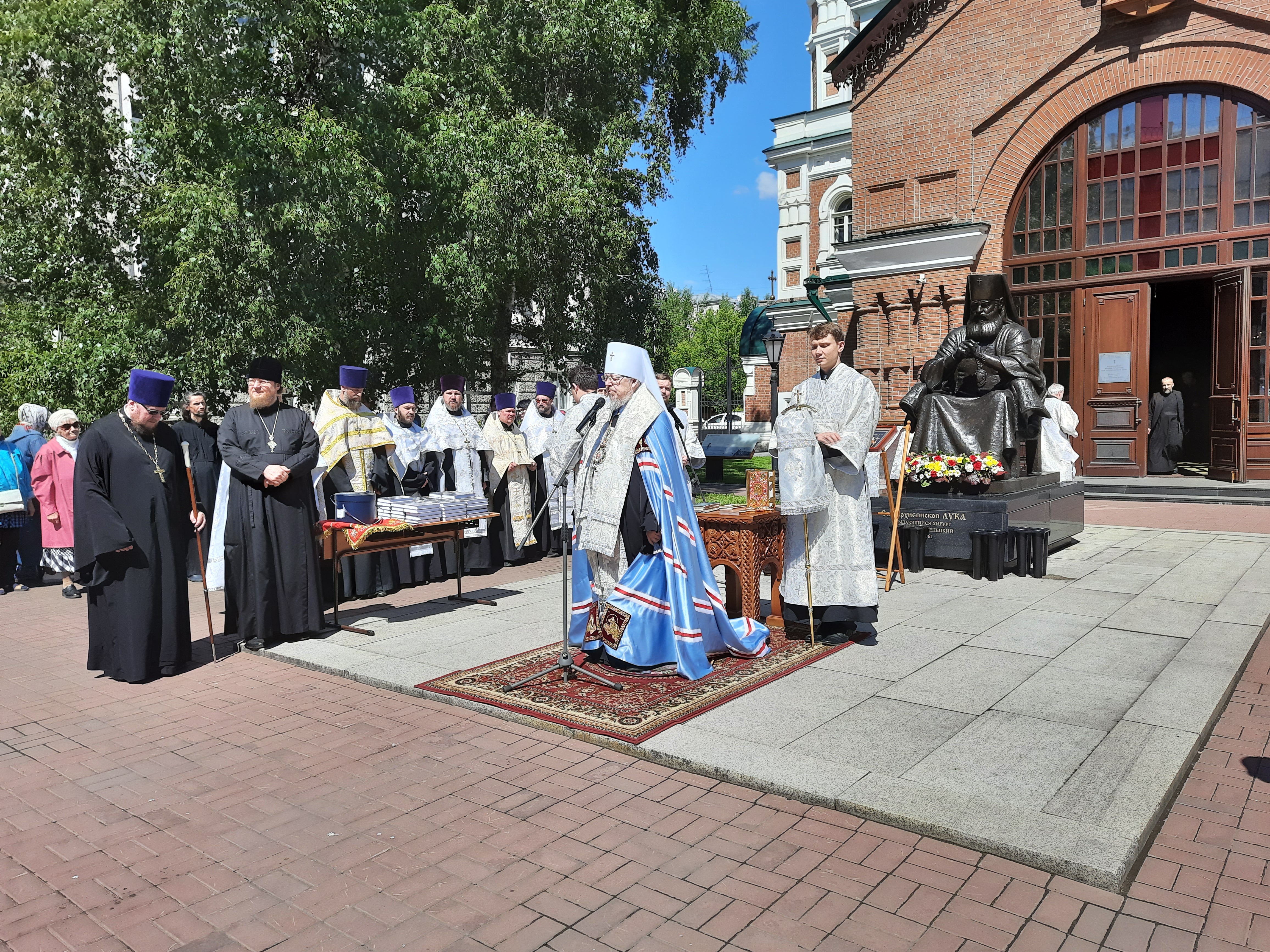 По окончании молебна прошла церемония возложения цветов к памятнику святителя Луки.