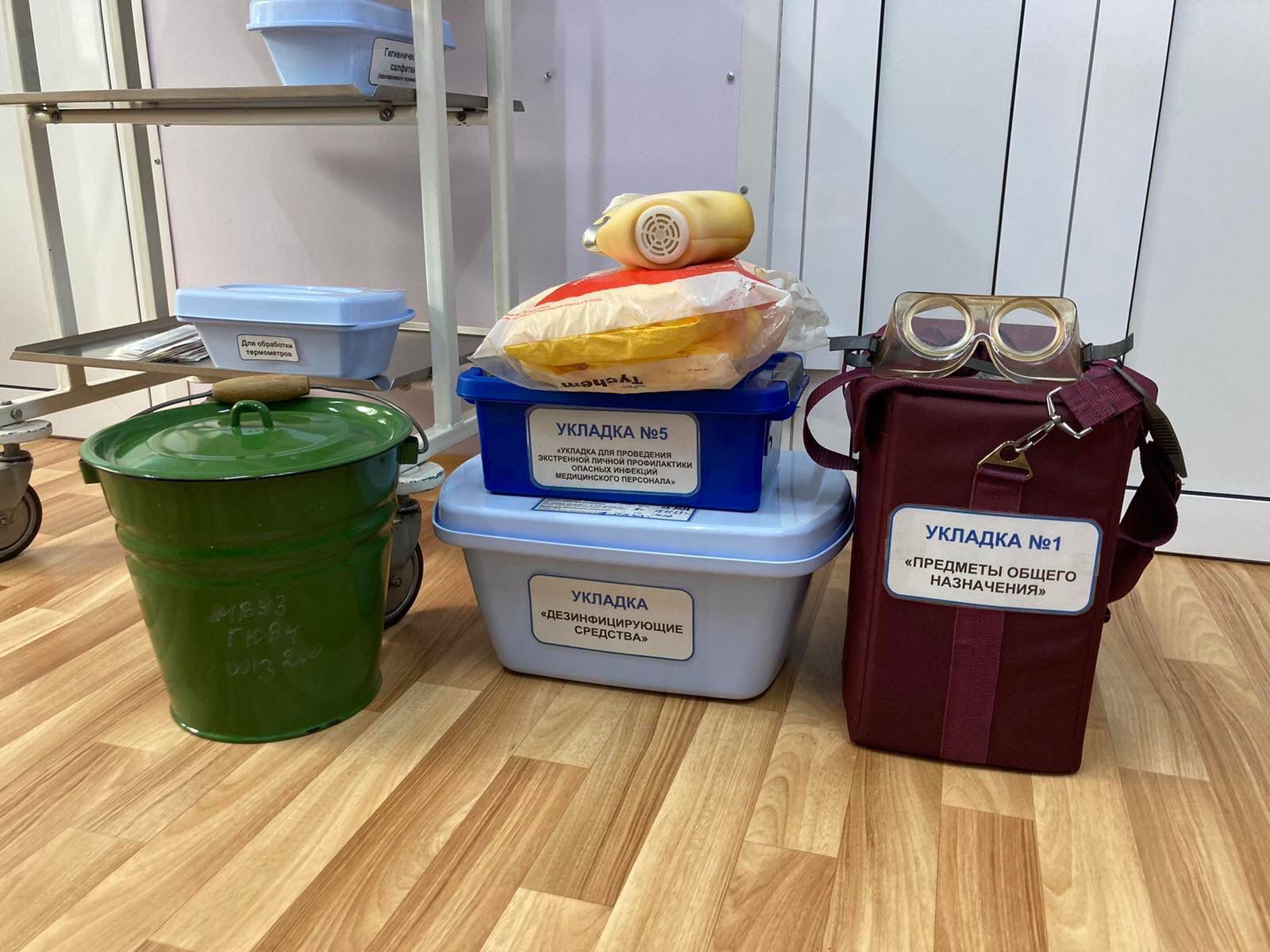 В практической части занятия были отработаны: алгоритм действий медицинских работников при выявлении больного с подозрением на особо опасную инфекцию; учение по локализации очага особо опасных инфекций; оповещение руководящего состава и консультантов по утвержденной схеме действий; умение надевать и снимать противоэпидемический костюм;