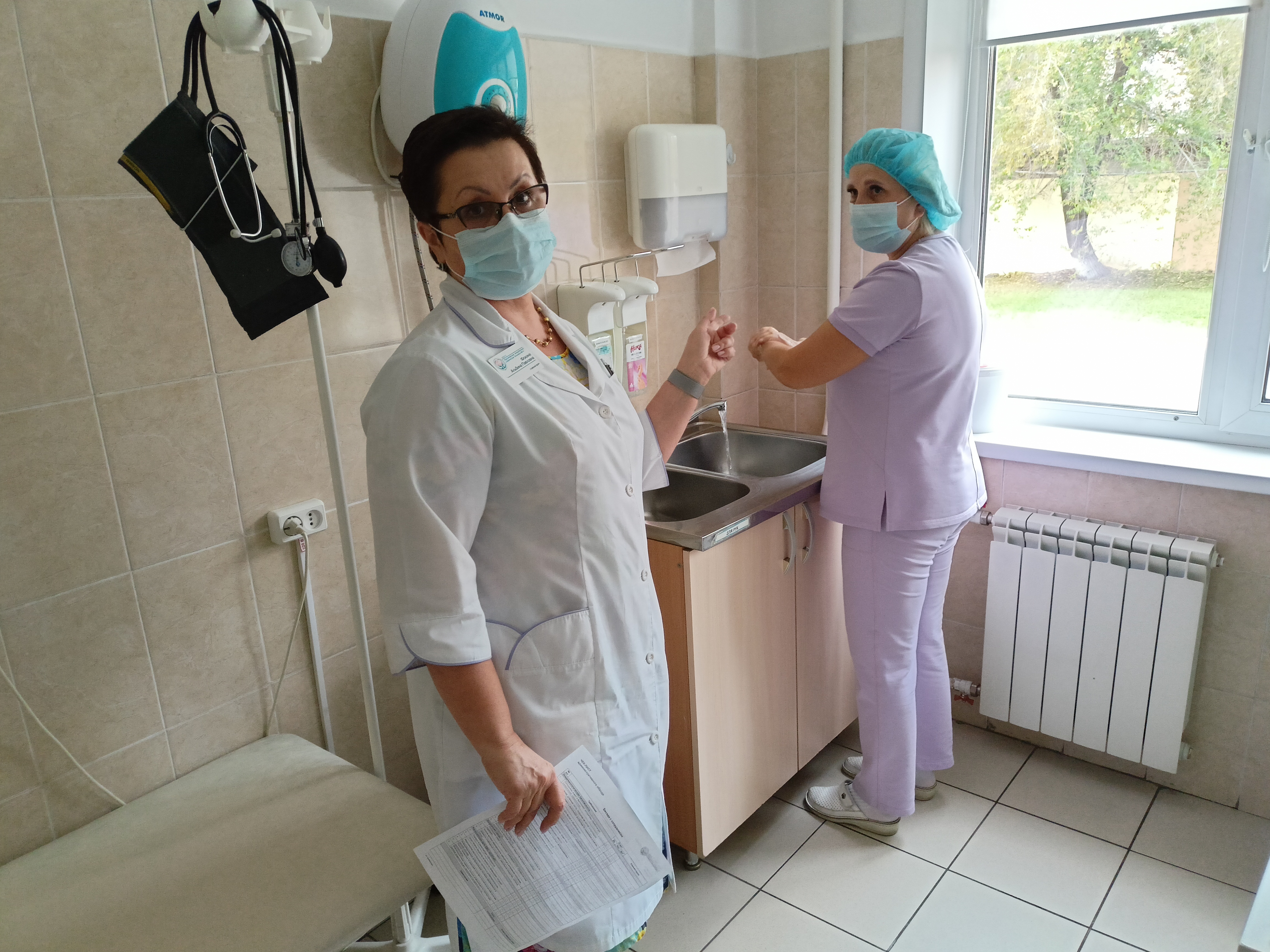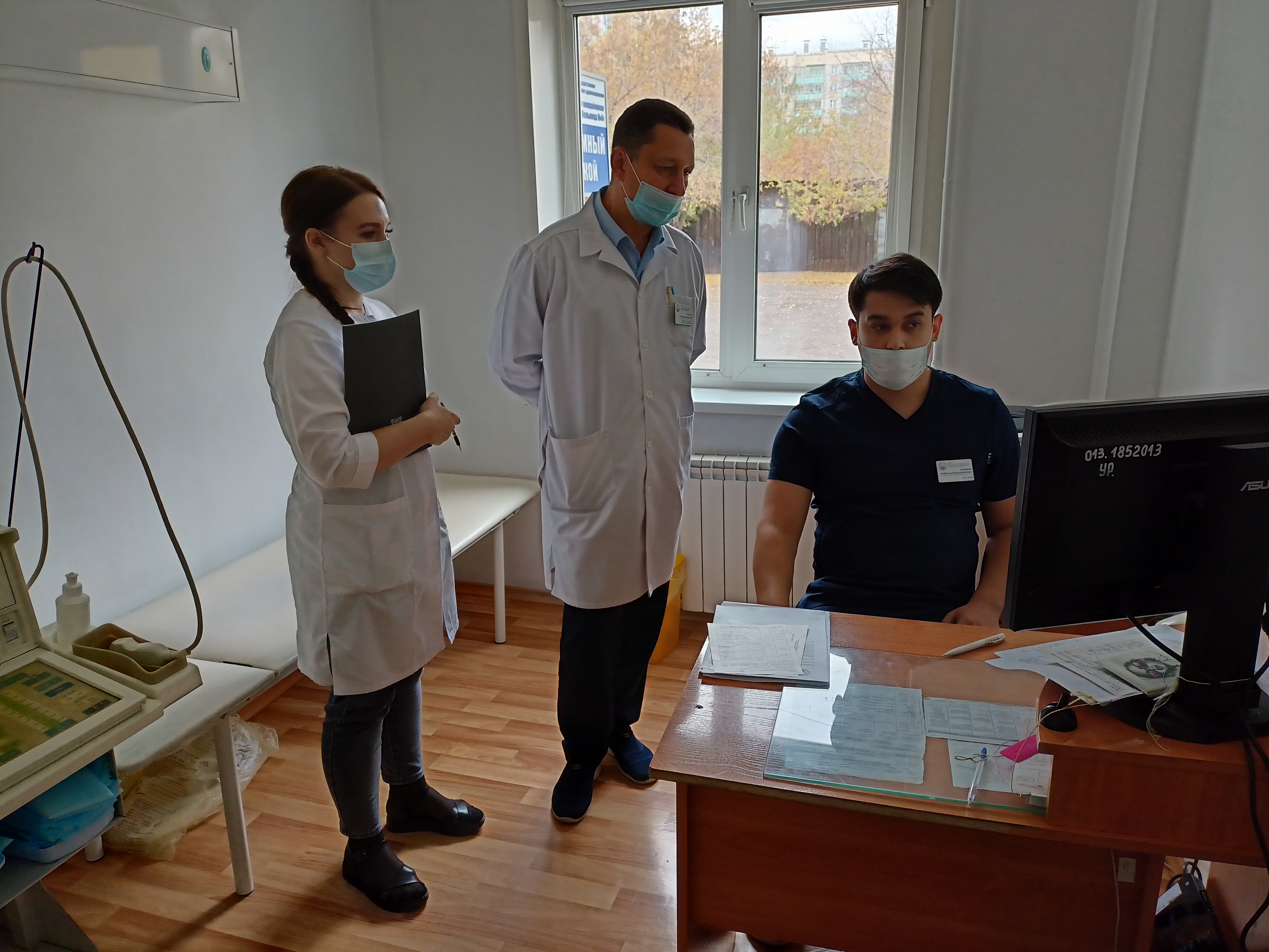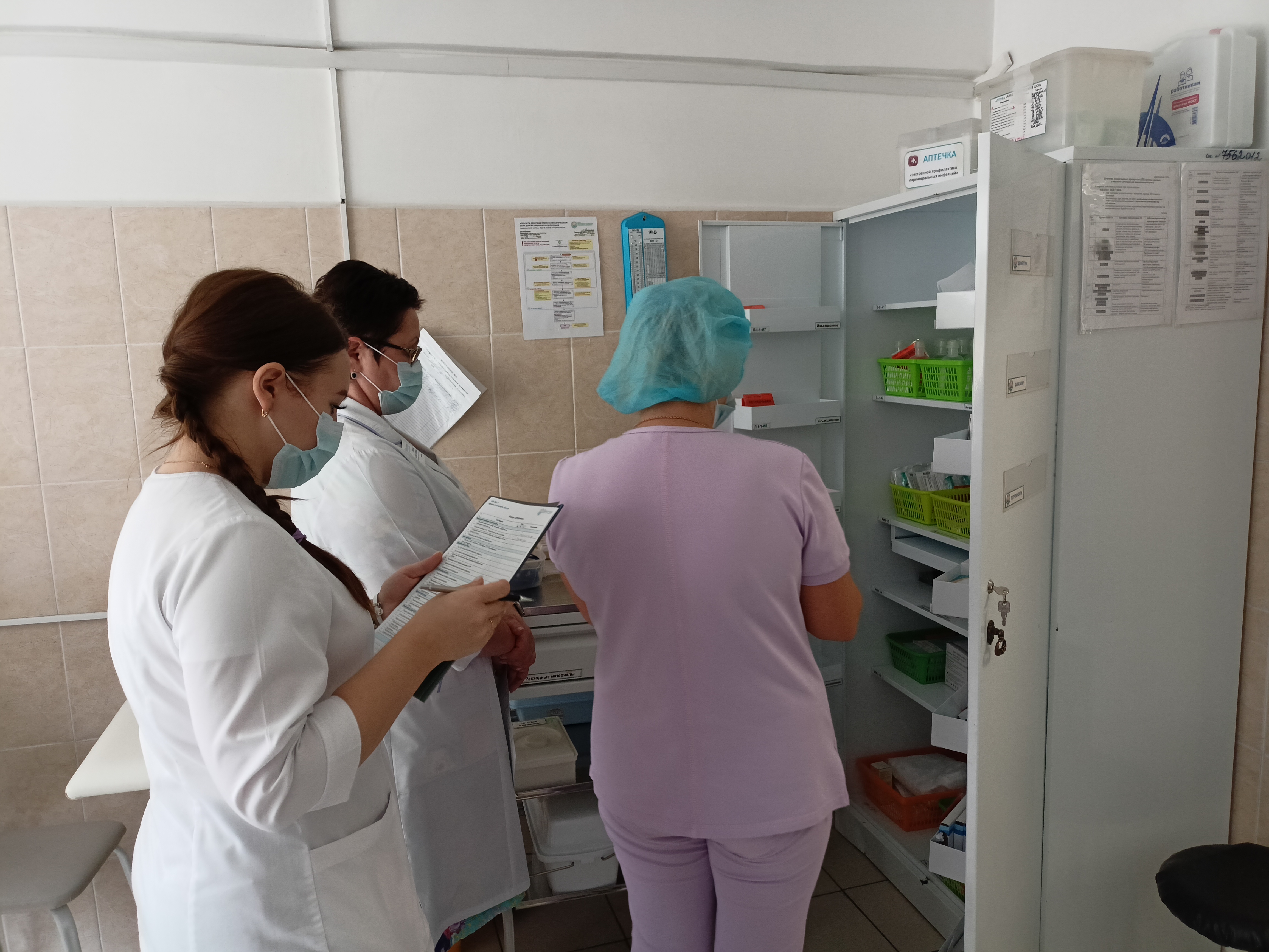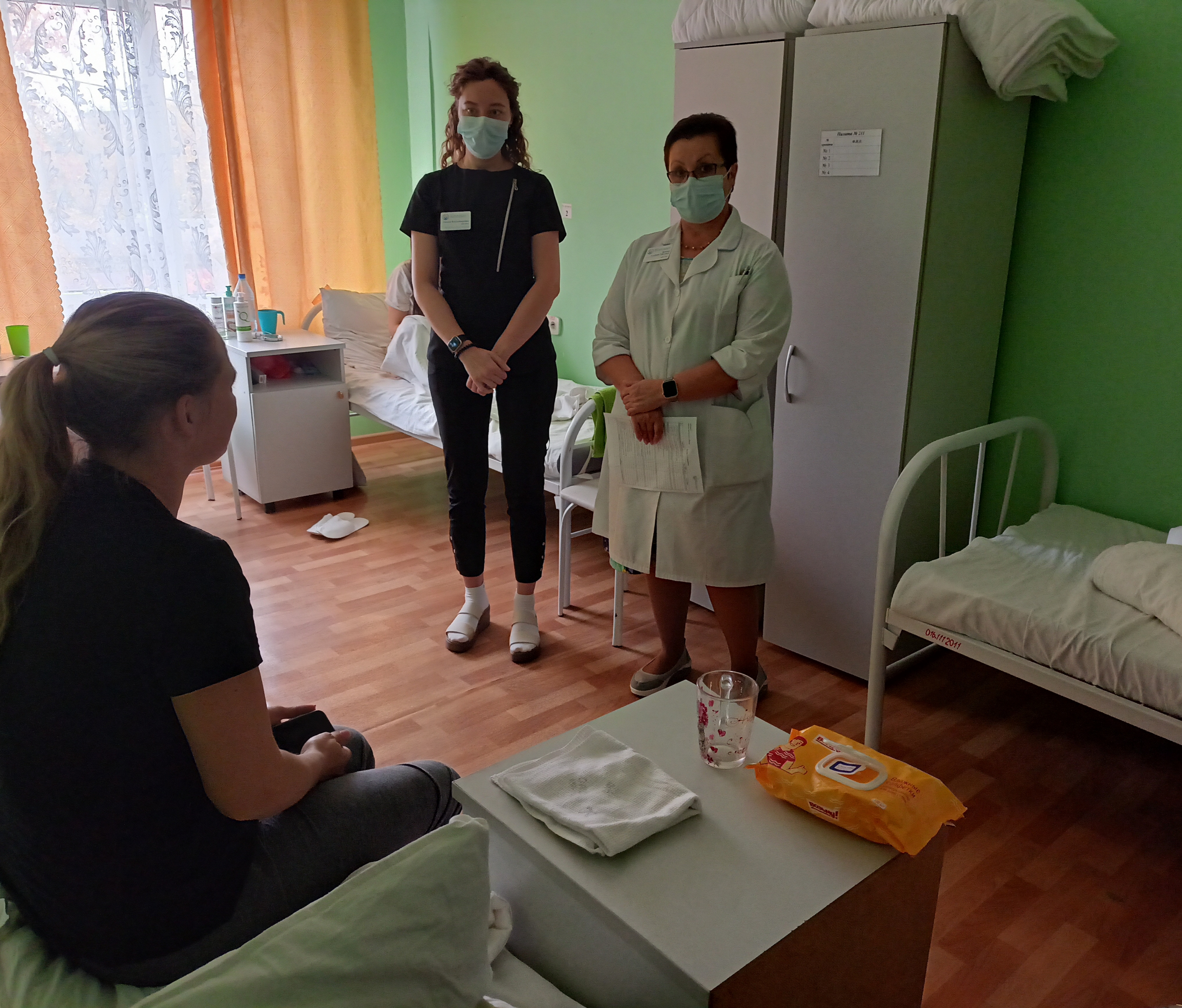 В рамках обхода особое внимание руководство больницы уделяет эпидемиологической безопасности. Сотрудники демонстрируют знания алгоритмов обработки рук, надеванию/снятию перчаток и маски.