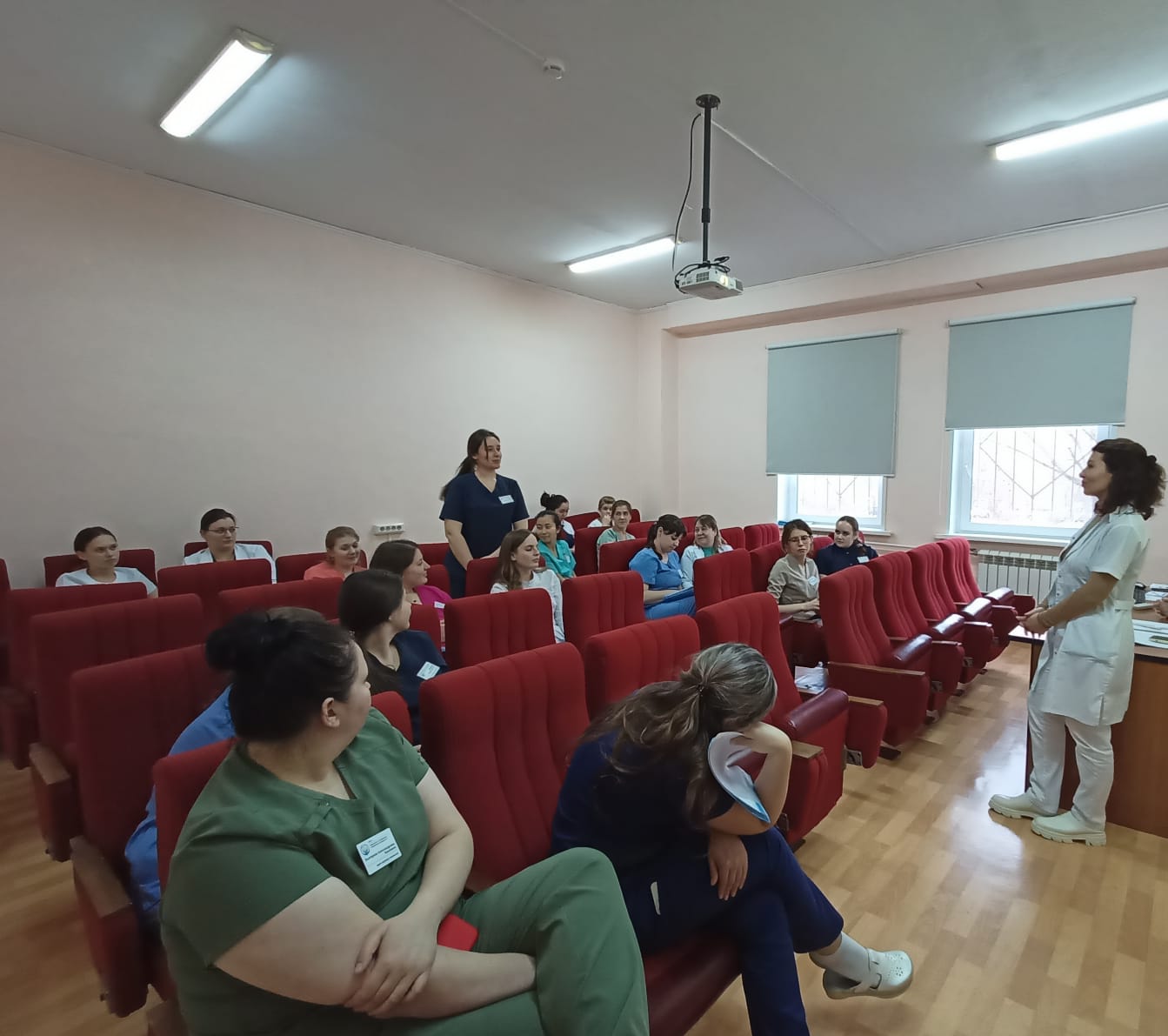 На занятии молодым врачам и медсёстрам были представлены техники, которые помогут справиться с недовольством пациента, снизить тревогу и предотвратить конфликт. Психологом была организована работа в парах, где медики учились строить коммуникации с собеседником: слышать говорящего, проявлять участие в беседе, отзываться на проблему и презентовать себя.