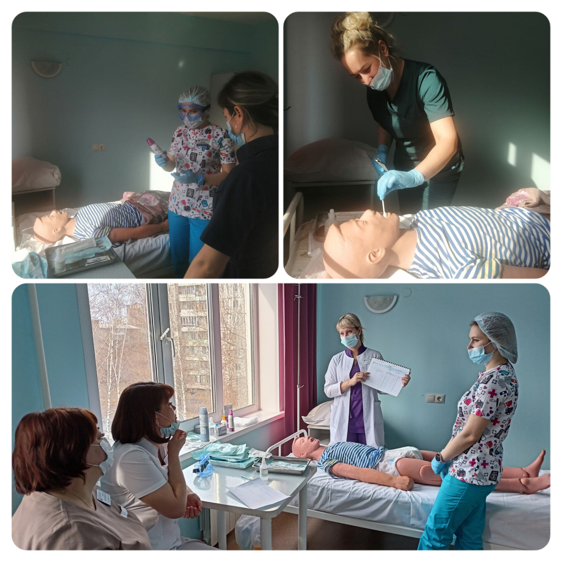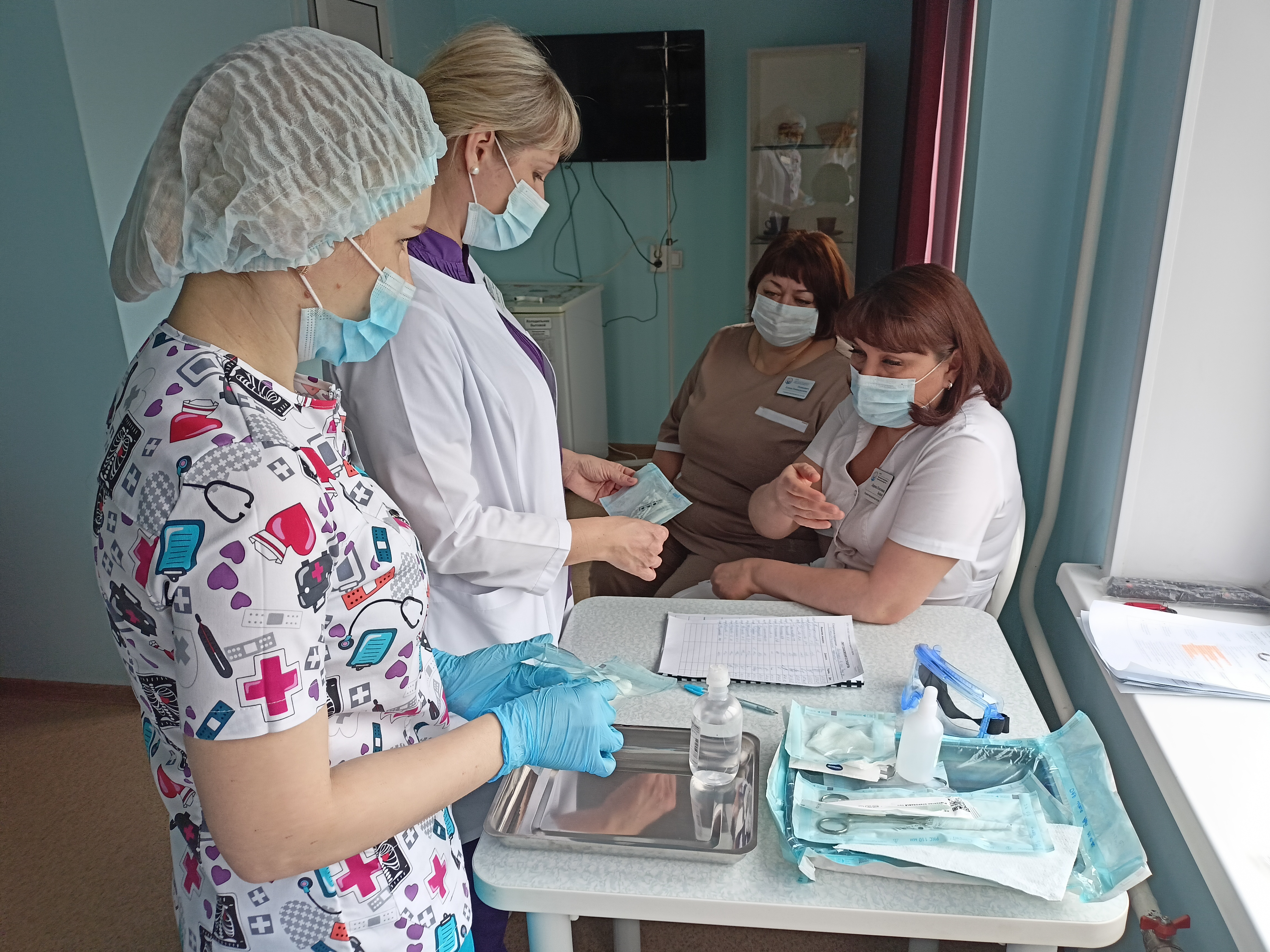 Так, на прошлой неделе для работников среднего медицинского персонала прошла отработка алгоритмов инструкции по уходу за тяжелобольным пациентом. Главная мед.сестра Татьяна Прадед и мед.сестра отделения анестезиологии и реанимации Виктория Некрасова поэтапно продемонстрировали коллегам правильное проведение необходимых гигиенических процедур с использованием манекена. Вместо привычного мыла в обновлённой инструкции используются пенки для мытья головы и тела, одноразовые зубные щётки и другие современные средства гигиены. Алгоритмы разработаны с учётом комфорта пациента, обеспечения инфекционной безопасности и удобства выполнения.