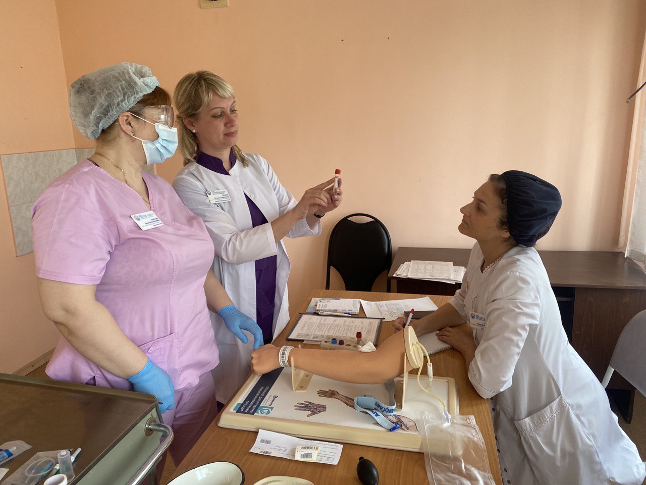 В КГБУЗ "Красноярская межрайонная клиническая больница №4" продолжается контроль навыков взятия венозной крови с помощью вакуумных систем для среднего медперсонала стационарных и амбулаторных отделений.