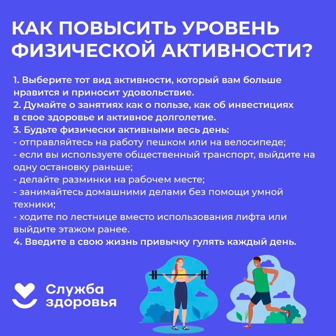 Подробнее о пользе физической активности и способах её поддержания читайте в карточках "Службы здоровья".