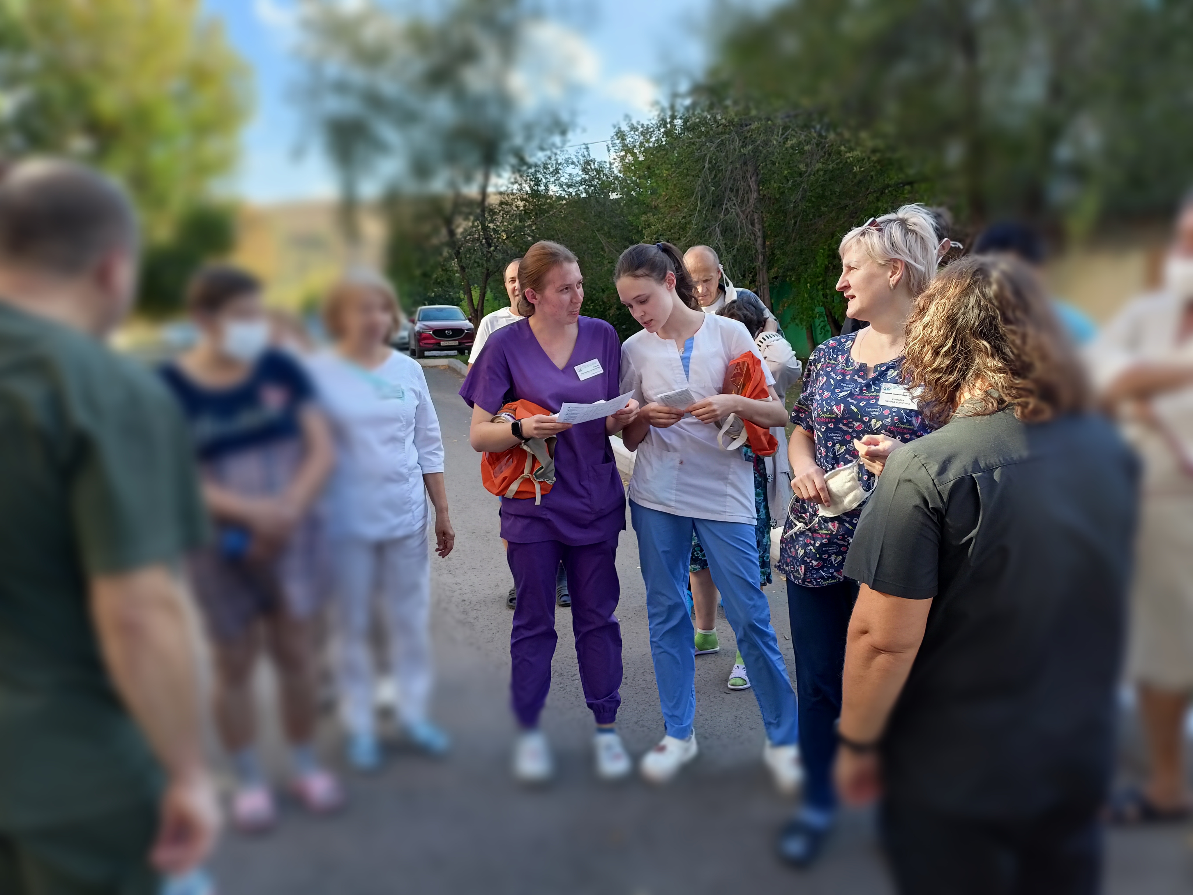 Начальники подразделений и дежурные провели перекличку, после чего в телефонном режиме сообщили о своих действиях главному врачу Альбине Павловне Фокиной.