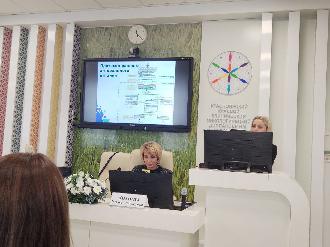 Вчерашний день был посвящён современным вопросам оказания помощи онкологическим и паллиативным пациентам. В числе выступающих были и наши специалисты. Медицинские сёстры отделения анестезиологии и реанимации Кристина Юрьева и Наталья Кравченко представили участникам форума доклады о нутриционной поддержке и энтеральном питании.