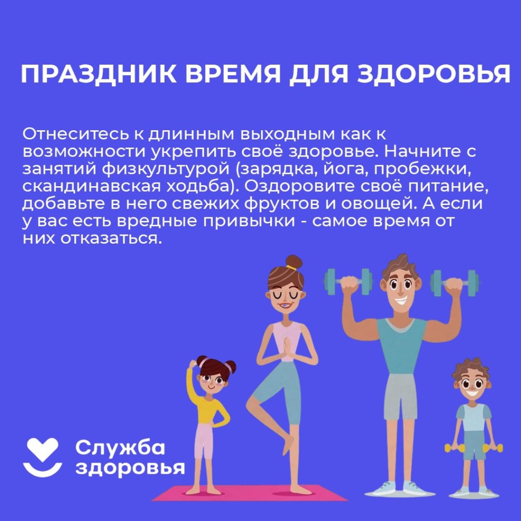 Как провести праздничные дни с пользой, читайте в карточках Службы здоровья.