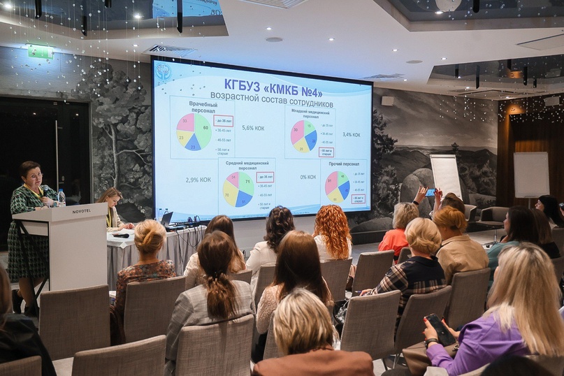 В рамках блока по управлению персоналом с докладом выступила главный врач Красноярской межрайонной клинической больницы № 4. Альбина Павловна поделилась с коллегами своим опытом. Она представила работу в рамках наставничества как способ адаптации, развития и удержания персонала.