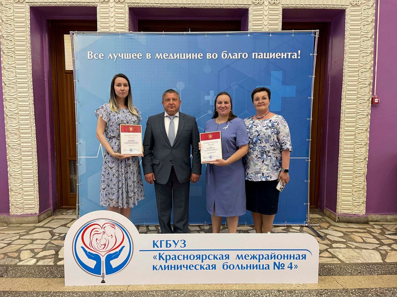 Почетными гостями праздника были представители государственных структур города и края: депутат Законодательного собрания Красноярского края Сергей Горбунов, советник главы города Станислав Новохацкий, депутат Красноярского городского совета Александр Первухин, заместитель руководителя администрации Кировского района Наталья Вычужанина. Все они передали грамоты и благодарственные письма от своих департаментов 18 сотрудникам нашей больницы.