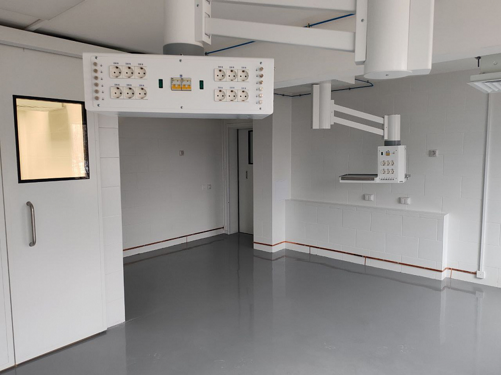 Первый этап уже завершён. На площадях будущего отделения ВРТ выполнен капитальный ремонт, который включал демонтаж старых покрытий, замену системы электроснабжения, сантехники, оконных проёмов и дверных блоков, установку системы вентиляции для режимных кабинетов и малой операционной. Стены и потолки выровняли и покрасили, в режимных кабинетах и санузлах - выложили кафельной плиткой. В палатах и операционной установили медицинские консоли. Для организации рабочих мест сотрудников произведён монтаж локальной вычислительной сети. Все работы выполнены с учётом доступа маломобильным группам населений, а помещения подготовлены в соответствии с санитарными требованиями.