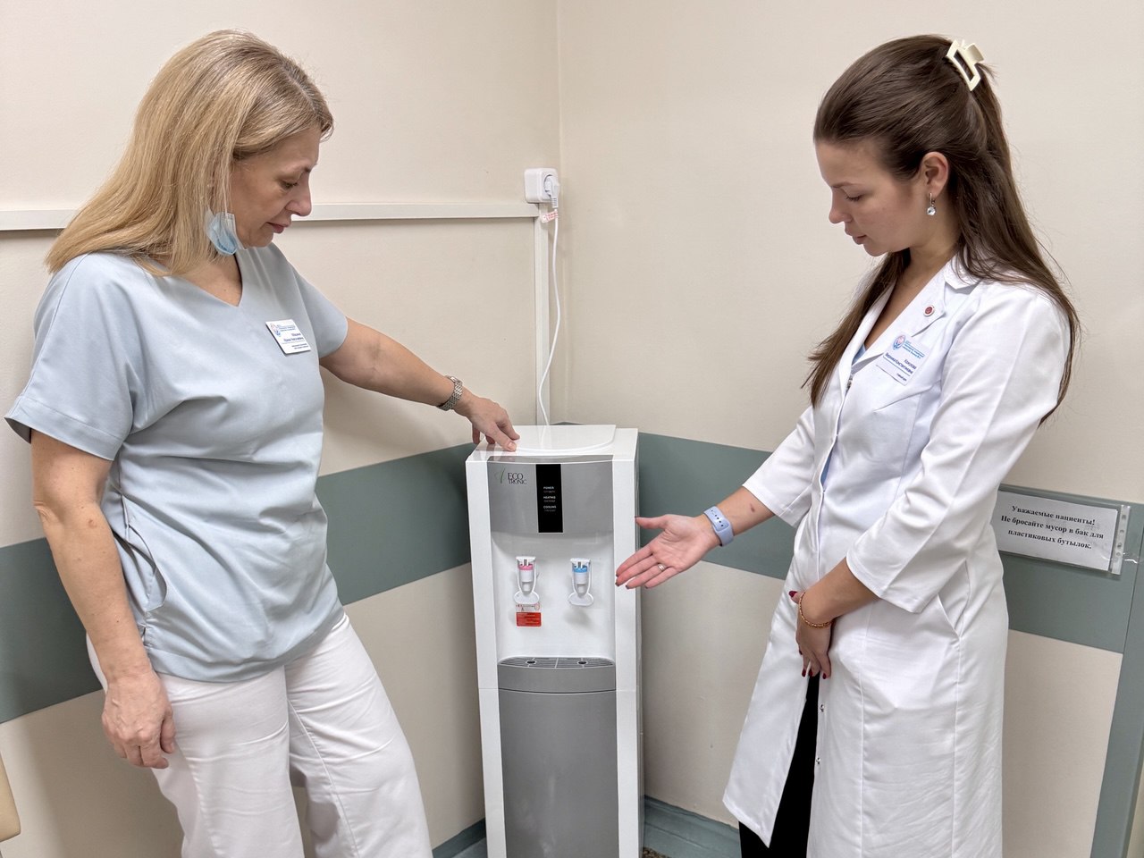 В отделении покрасили стены, потолки, заменили напольное покрытие и дверные проёмы, отремонтировали санитарные узлы, столовую, смотровые и процедурные кабинеты, а в коридорах установили отбойники.