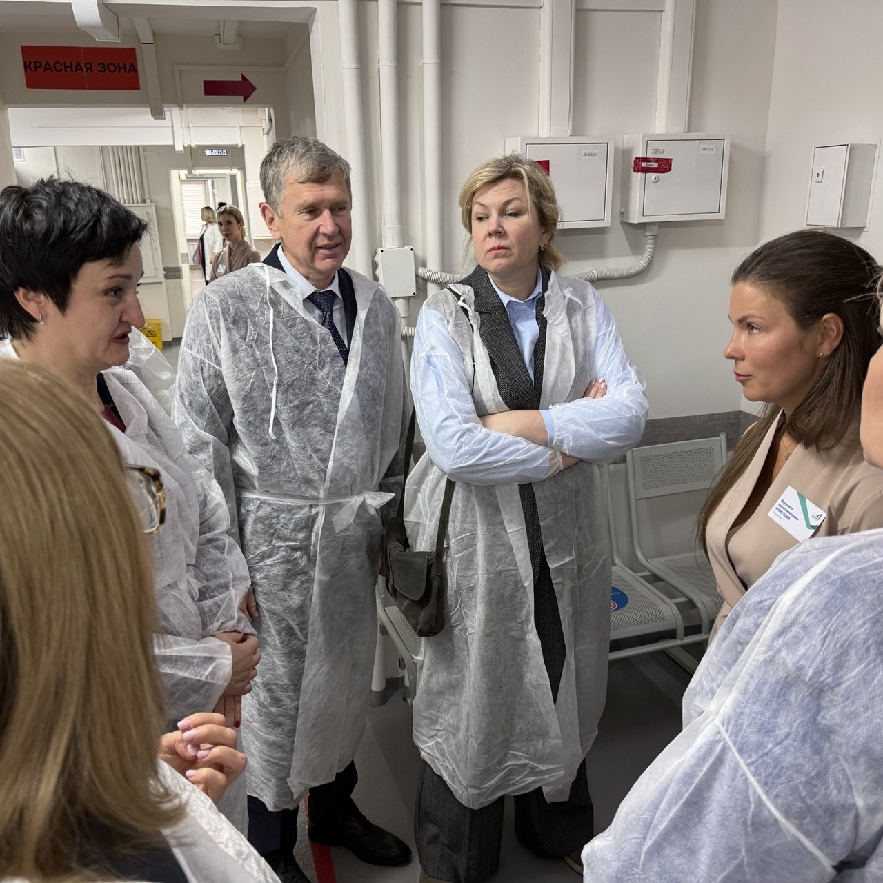 В сопровождении первого заместителя министра Юлии Белоусовой, главного врача Вероники Кожуховой и заместителя главного врача Тимура Шагеева гости изучили выстроенную систему оказания экстренной и плановой медицинской помощи в приёмном отделении больницы, посетили экстренное гинекологическое отделение и площади будущего Центра вспомогательных репродуктивных технологий.