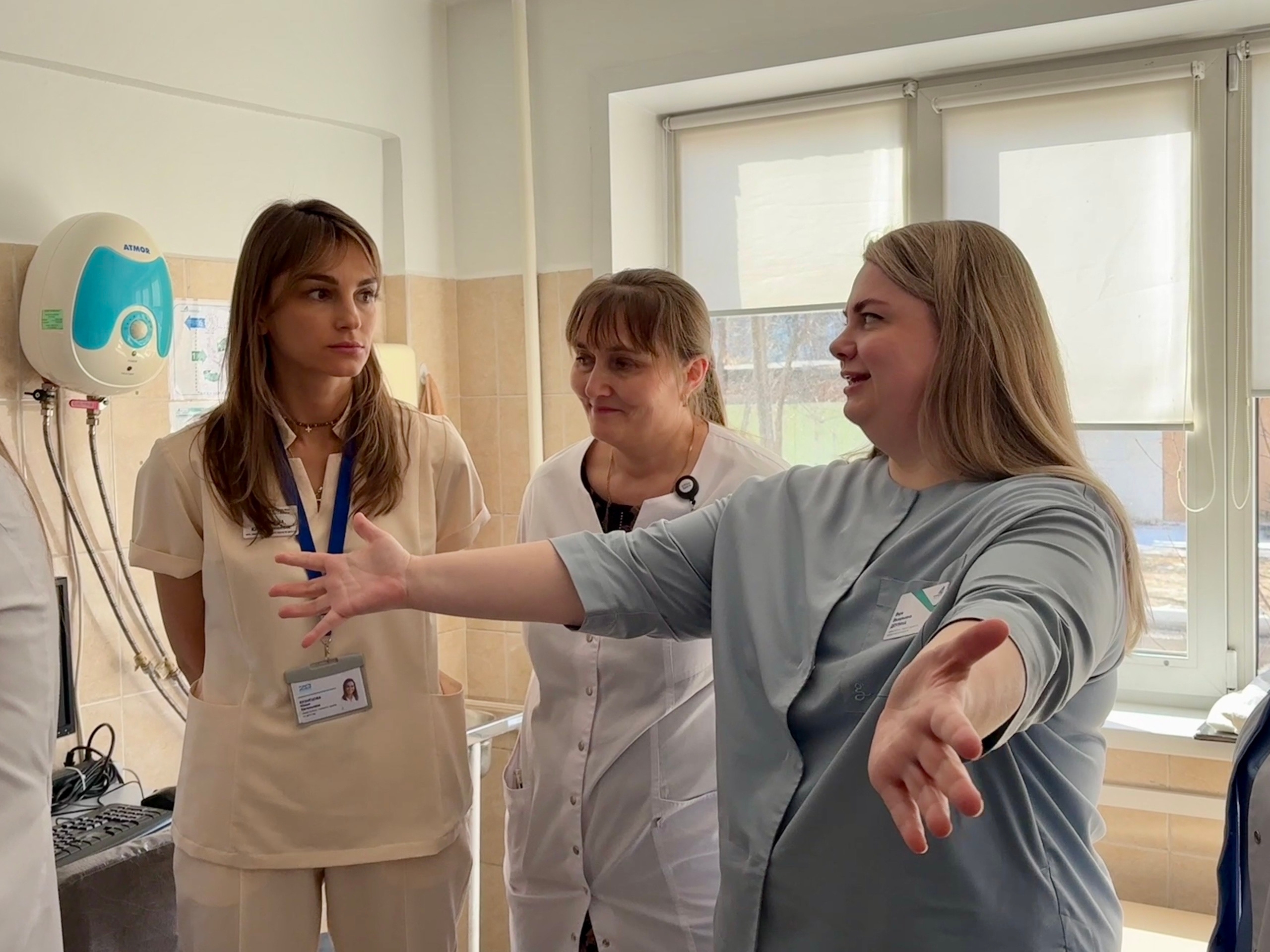 Встретили делегацию заместители главного врача Тимур Шагеев и Вера Деулина. Гостям показали, как организована работа «красной» и «зеленой» зон, как выстроена система быстрой диагностики и взаимодействие между приемным и профильными отделениями (хирургией, урологией, гинекологией, реанимацией).